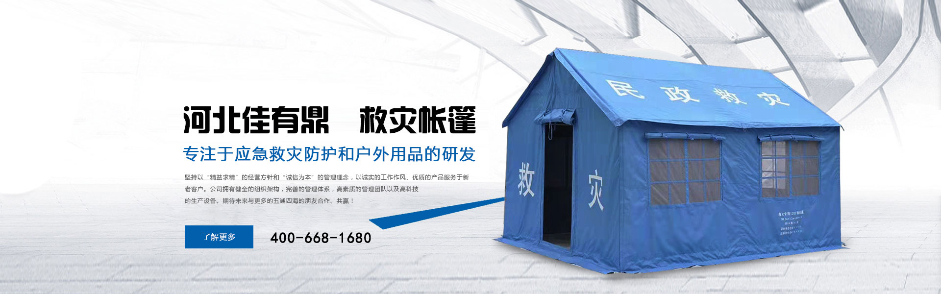 河北佳有鼎科技有限公司多年來專注于應(yīng)急救災(zāi)防護和戶外用品的研發(fā),是一家集研發(fā)、設(shè)計、生產(chǎn)、銷售、服務(wù)于一體的綜合型公司。位于大廣高速和邢衡高速的連接地段,工廠占地面積約2萬平方米,3分鐘可達高速其便捷的交通優(yōu)勢可以快速服務(wù)于北京天津河北省會山東省會等。